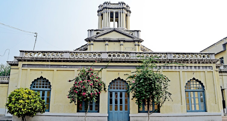 Chattar Manzil is an exquisite architectural fusion, seamlessly blending European and Indo-Islamic influences. The lower section of the building exhibits European architectural elements, characterised by graceful arches, majestic domes, and detailed floral motifs.